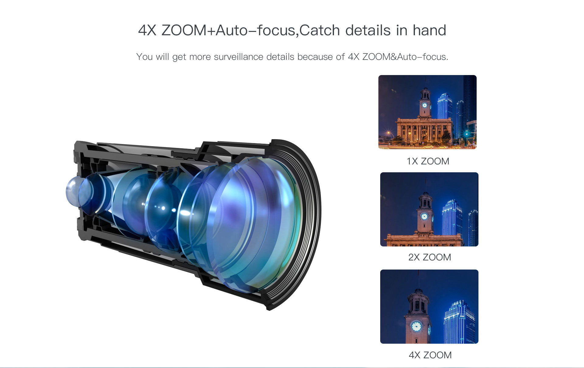 สุดยอดนวัตกรรมใหม่!!! กล้องวงจรปิดภายนอกอาคาร 720P เลนส์ซูมได้ 4 เท่า รุ่น C33-X4 ความละเอียด 1 ล้านพิกเซล HD กันน้ำ IP66 กันแดดกันฝน กันฝุ่น มองเห็นภาพกลางคืนชัด หมุนได้ 355 องศา และ 90 องศา แนวดิ่ง มุมมองกล้องรอบทิศทาง ตรวจจับความเคลื่อนไหวขั้นสูง (Motion detect) ไฟส่องสว่างอัตโนมัติแบบระยะไกลรองรับระบบคลาวส์ (Cloud service)
